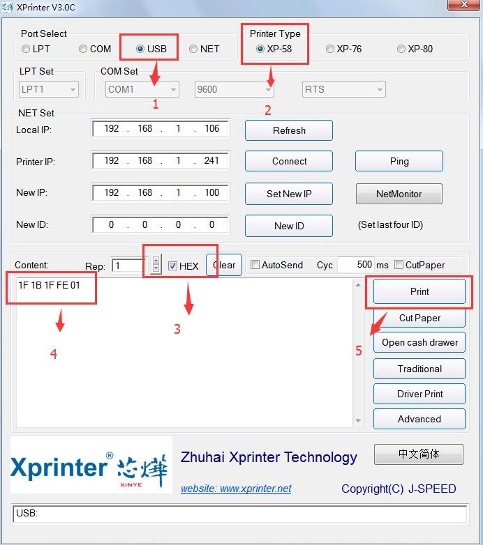 Как убрать иероглифы принтер чеков Xprinter 58 мм. Руководство для действий в утилите Xprinter TEST