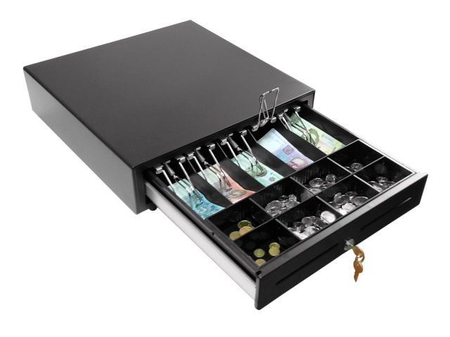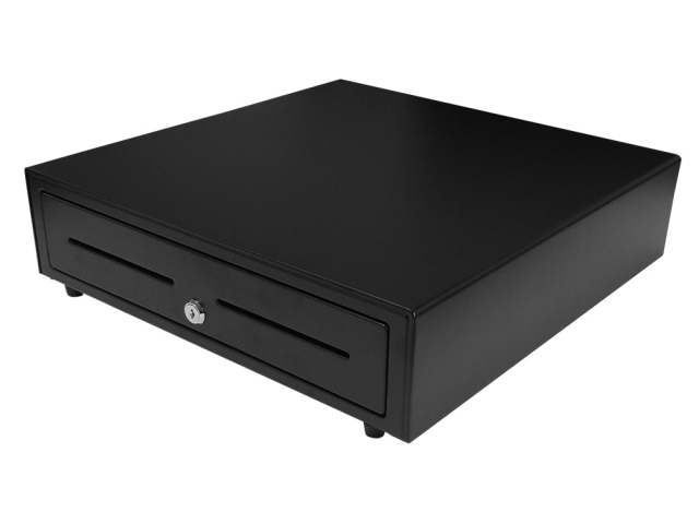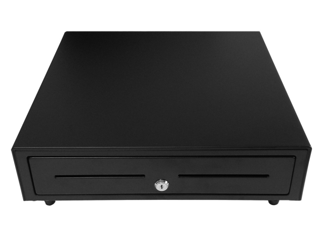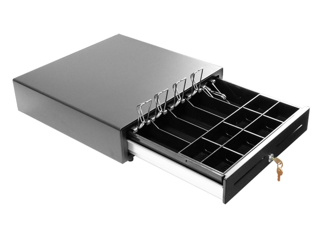 Горизонтальное (Выдвижной);крышка для инкас. нет; 3-х позиционный (открыто/авто/закрыто);откр.ящ. Электромеханическое;авар.откр. Да;отд.банкнот 5;Держ.купюр Есть;отд.монет 8 (съемное);отд.чеков 1;съем.монет. Да;напряж.ден.ящ. 6В; 12В; 24В; RJ11;корпус Металл;Размер: 410 х 415 х 100 мм; Две прорези на фронтальной части для чеков форм. А5
