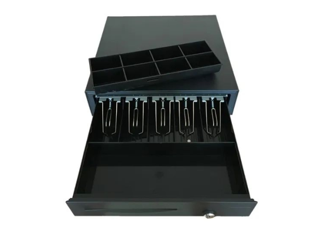 Горизонтальное (Выдвижной); 3-х позиционный (открыто/авто/закрыто);откр.ящ. Электромеханическое;авар.откр. Да;отд.банкнот 5 (регулируемые);;Держ.купюр Есть;отд.монет 8 (регулируемые);;отд.чеков 1;;съем.монет. Да;;cъем.внут.лоток Да;;напряж.ден.ящ. 12В; 24В;; RJ12;корпус Металл;Размер: 410x415x100 мм;;Масса 6 кг;; Черный