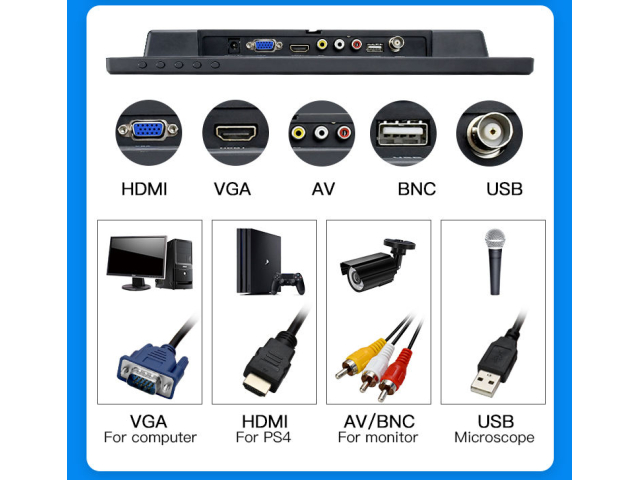 Сенсорный монитор ОТМ -1330С оснащен достаточно широким спектром портов подключения для вывода изображения, что фактически делает его универсальными и совместимыми с любым ПК, мини ПК (где например обычно может быть не предусмотрено VGA порта для подключения монитора), тогда можно использовать HDMI порт – благодаря которому воспроизведение изображения более четко. Монитор также оснащен BNC разъемом, что позволяет использовать монитор и в системах видеонаблюдения, а благодаря аудио выходу можно воспроизводить и звук.
