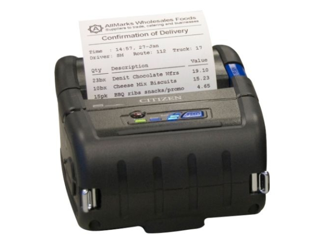 Citizen CMP-30IIL – функциональное и практичное устройство для высококачественной мобильной печати чеков и термоэтикеток с максимальной шириной 72 мм. Оно идеально подходит для выездной торговли и работы в условиях больших помещений, где проще перемещать оборудование, чем сами товары.