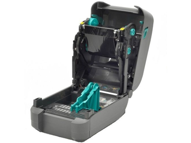 Достоинством настольного принтера Zebra GT800 является увеличенный отсек для расходных материалов, позволяющий использовать риббоны (красящие ленты) длиной 300 м, что значительно сокращает затраты на техническое обслуживание.