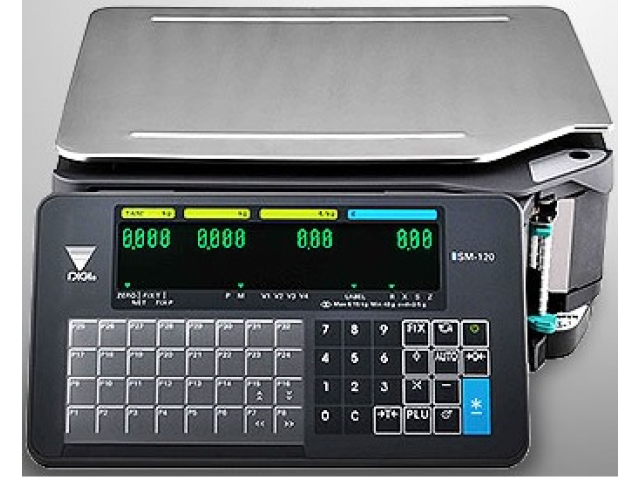 Весы самообслуживания;С печатью этикетки;Торговые;;макс.предел 6 кг;15 кг;30 кг;;точн.взвеш. 1/2 г;2/5 г;5/10 г;;ск.печ. до 110 мм/сек;;интерф.подкл. RS-232;Ethernet;RJ11;;Беспров.связь: Wi-Fi (опция);;Дисплей LCD (ЖК дисплей) - 2 дисплея;;Стойка Нет;Платформа весов: Нержавеющая сталь;;Ширина этикетки: 60 мм;Диаметр рулона: 105 мм;Клавиатура: 55 клавиш;;Клав.быстр.вызова: 32 клавиши;аккум.время работы: до 380 час;Питание сеть (220В);аккумулятор;;Размер: 361 (W) x 470 (D) x 531 (H) mm;