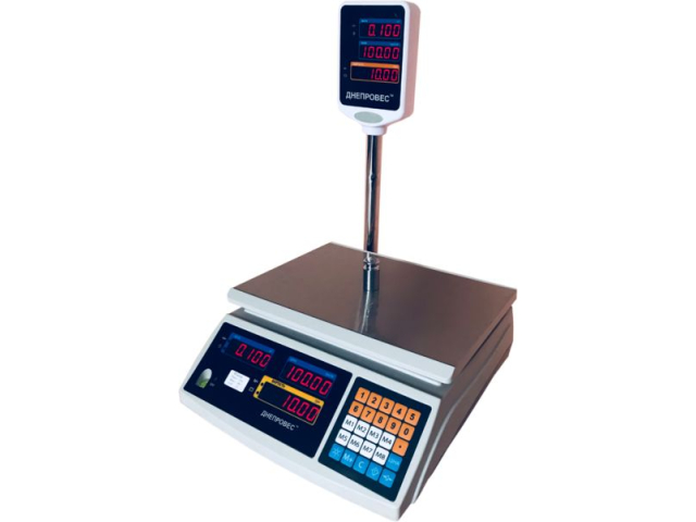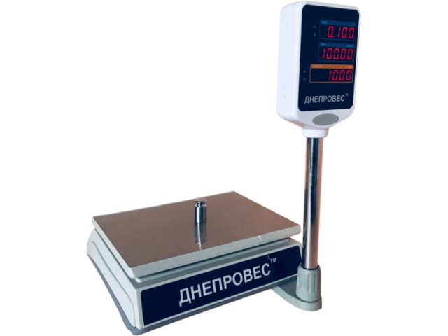 Торговые;макс.предел 3 кг;6 кг;15 кг;30 кг;;мин.предел 10 г;20 г;40 г;100 г;;точн.взвеш. 0,5 г;1 г;2 г;5 г;;Дисплей LED (Светодиодный) - двухсторонний;Стойка Да;Платформа весов: Пластиковая (с нержавеющей пластиной);аккум.время работы: до 50 час;Питание аккумулятор;сеть (220В);;Размер: платформа 305x230 мм;Масса 3.6 кг;