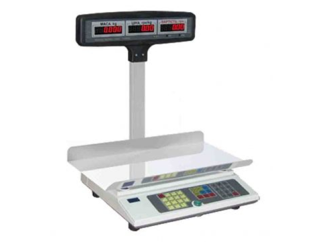 Торговые;;Класс точности: Средний (III);;макс.предел 15 кг;;точн.взвеш. 2/5 г;;интерф.подкл. RS-232;Ethernet (опция);USB (опция);;Дисплей LED (Светодиодный) - двухсторонний;Стойка Да;Платформа весов: Нержавеющая сталь;;Питание сеть (220В);аккумулятор;;Размер: платформа 240x400 мм;